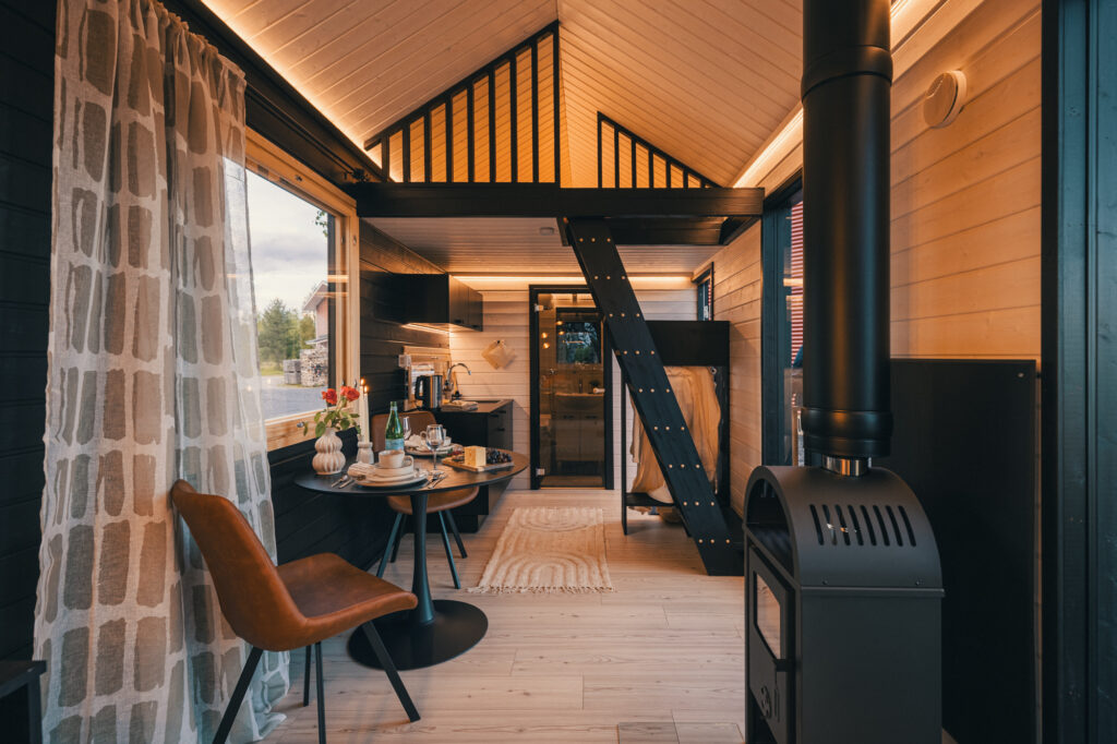 Your group shares the cabin with one double bed on the loft and a double sofabed in the living room.